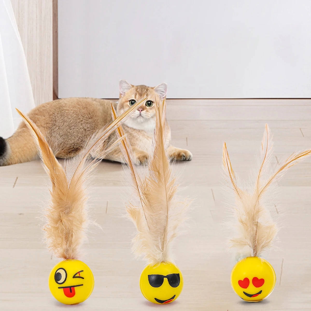 Instinct-Stimulating Cat Toy Set – 3/5 Pack Colorful Feather Balls, Durable Plastic for Interactive Play & Owner Bonding